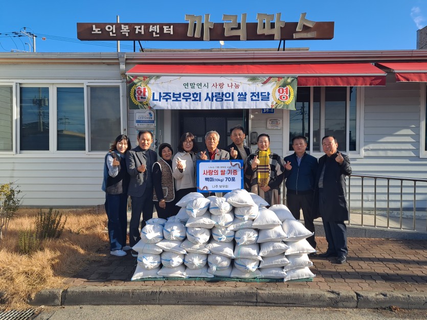 나주보우회는 평소에도 지역사회를 위한 봉사와 나눔 활동을 꾸준하게 이어오며 상생과 연대의 가치를 실천하는 단체로 이번 기부 역시 단체 회원들의 자발적인 참여로 마련 되었기에 큰 의미가 있는 행사였습니다. 오늘 나눔행사에 나주보우회 회장님과 총무님을 비롯하여 다수의 회원님들이 함께 해주셨고, 특별히 센터 관할지역인 이창동 행정복지센터장님과 복지팀장도 함께해주셔서 더 뜻깊은 행사 였습니다.